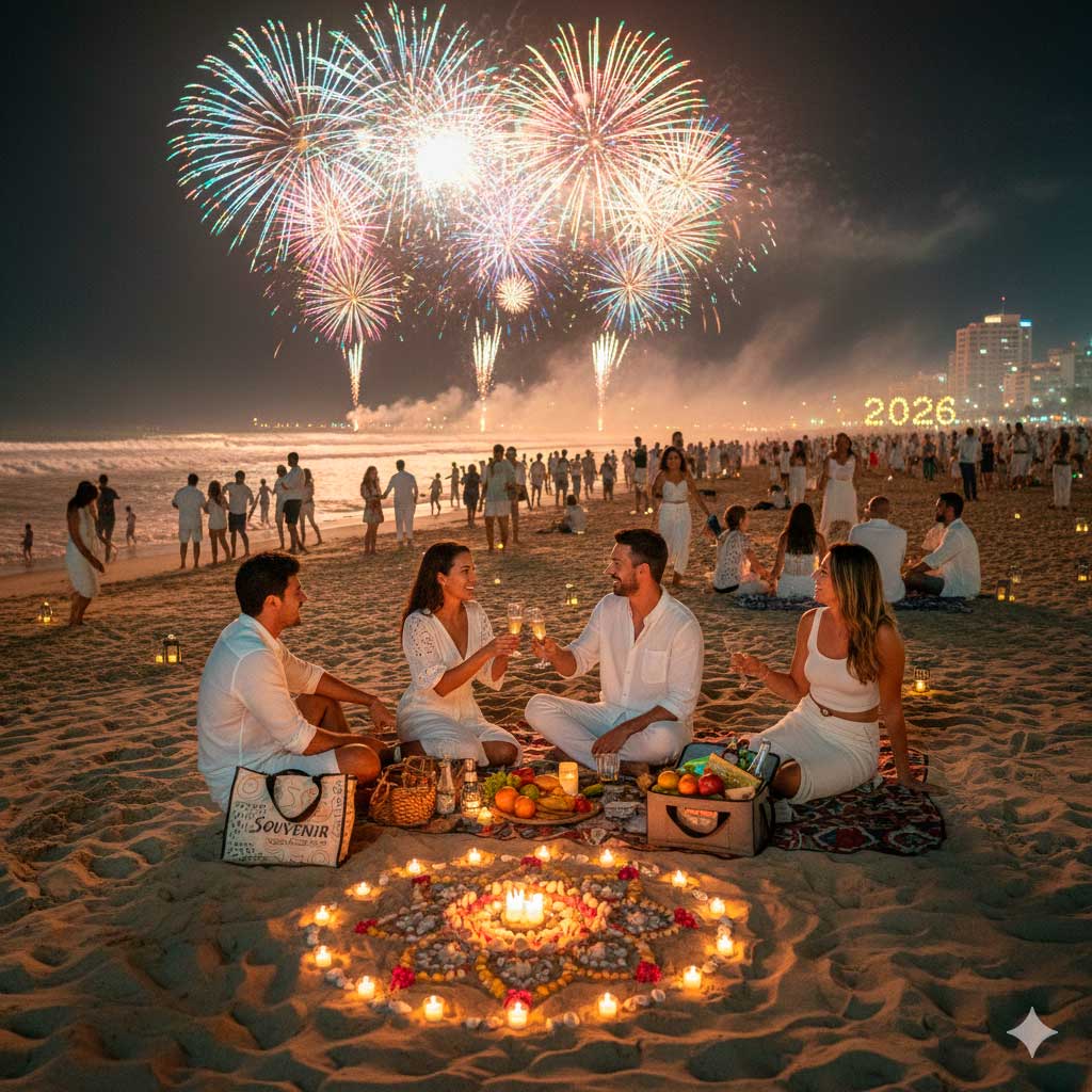 Para quem não abre mão da tradição, pular as sete ondas é o momento alto da celebração. Em 2026, aproveite esse ritual para focar em intenções claras de renovação.