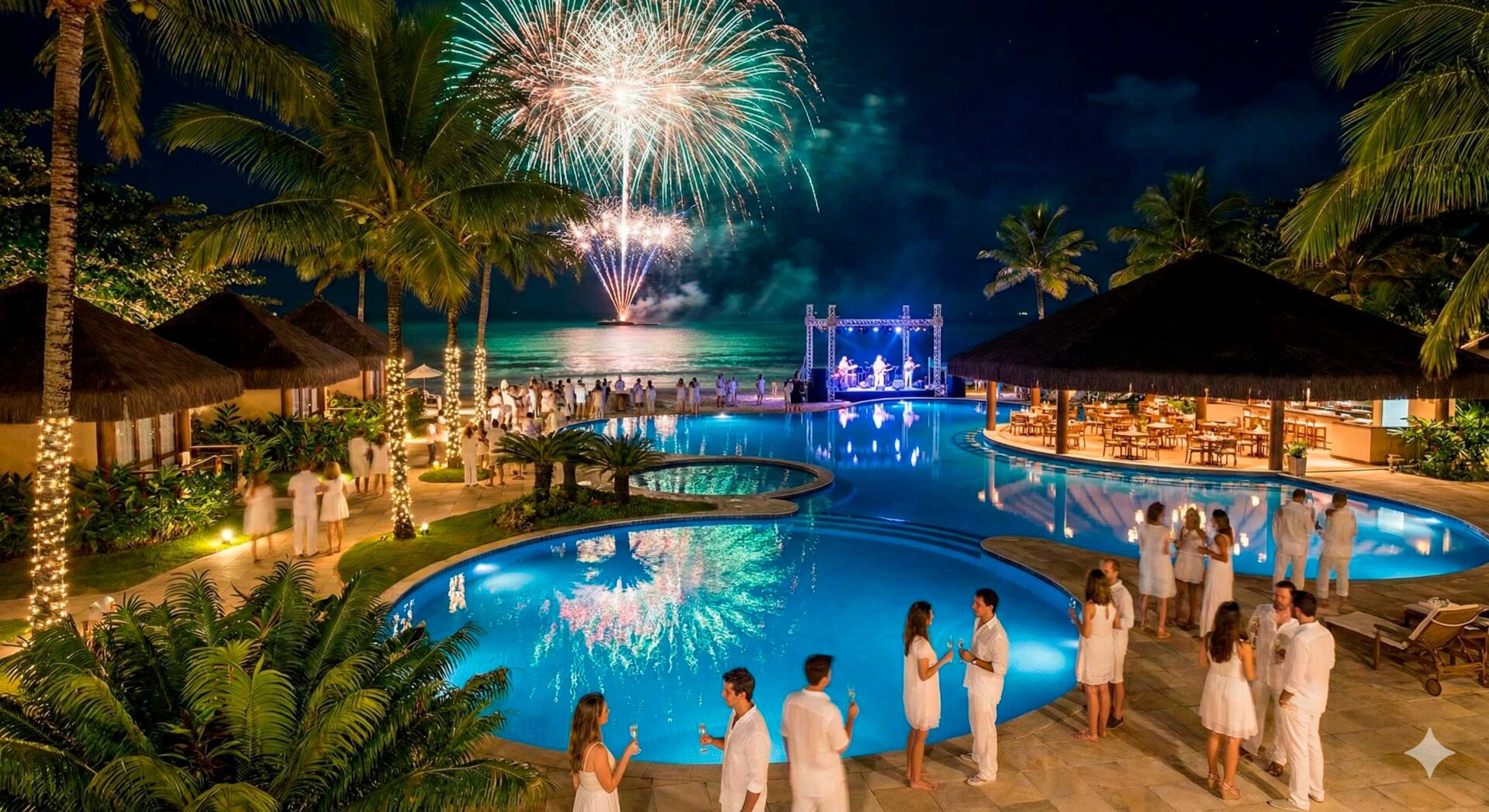 Passar a virada do ano em um resort no Brasil é uma experiência única. É a união da nossa tradicional superstição das roupas brancas e das 7 ondas com o conforto da hotelaria de alto padrão. Não há preocupação com quem vai lavar a louça da ceia, nem com o trânsito da volta da praia. É puro desfrute.