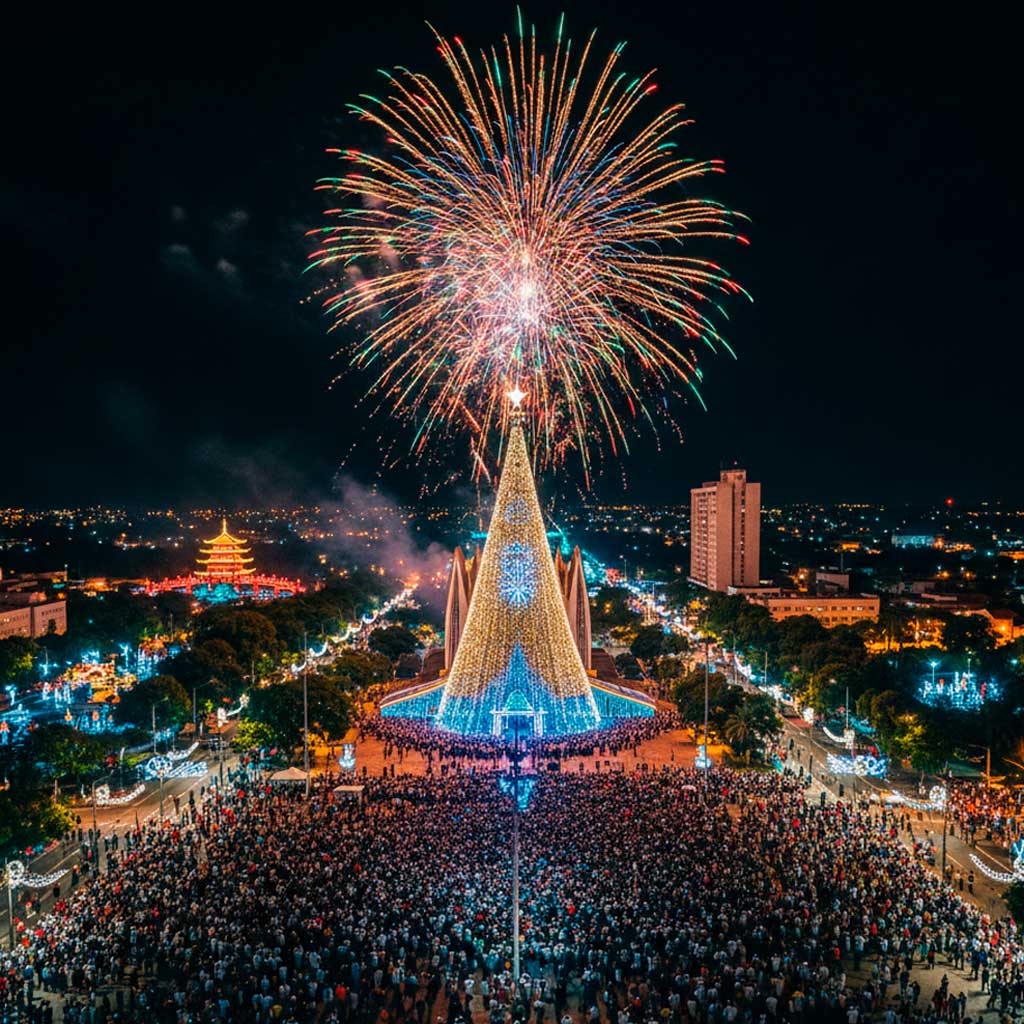 Maringá é referência em qualidade de vida e urbanismo. No final do ano, a cidade se transforma com a “Maringá Encantada”, uma decoração natalina e de Ano Novo que espalha luzes e magia por todas as avenidas. É um destino versátil: oferece desde grandes festas em hotéis e clubes até celebrações públicas e gratuitas com shows regionais e queima de fogos.