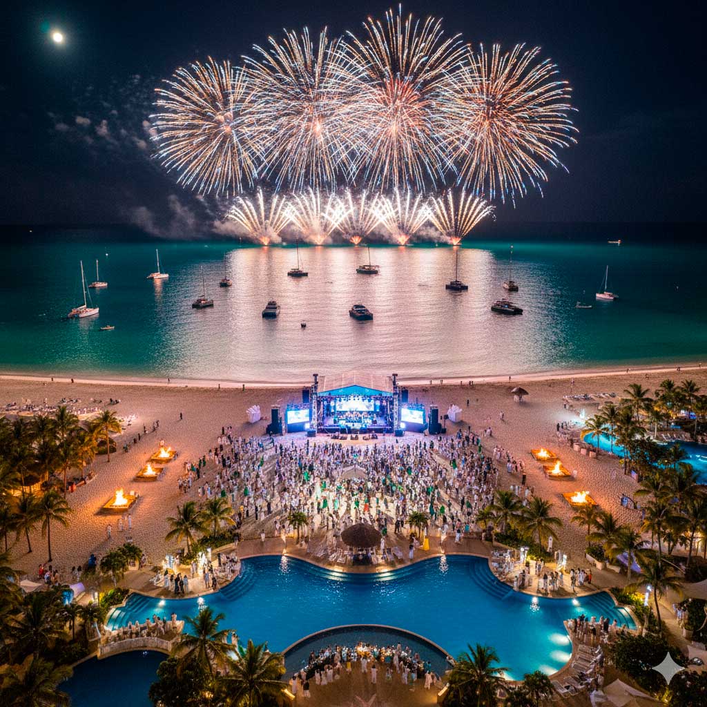 A virada de ano em Punta Cana é sinônimo de celebração grandiosa e bem organizada. Ao contrário de destinos com festas de rua, a festa principal acontece dentro dos próprios resorts, que competem para oferecer o evento mais memorável aos seus hóspedes: